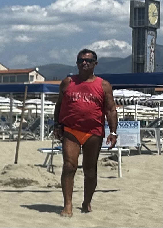 Cash: Swimming in the Mediterranean in Viareggio.