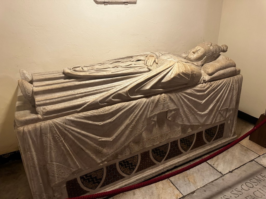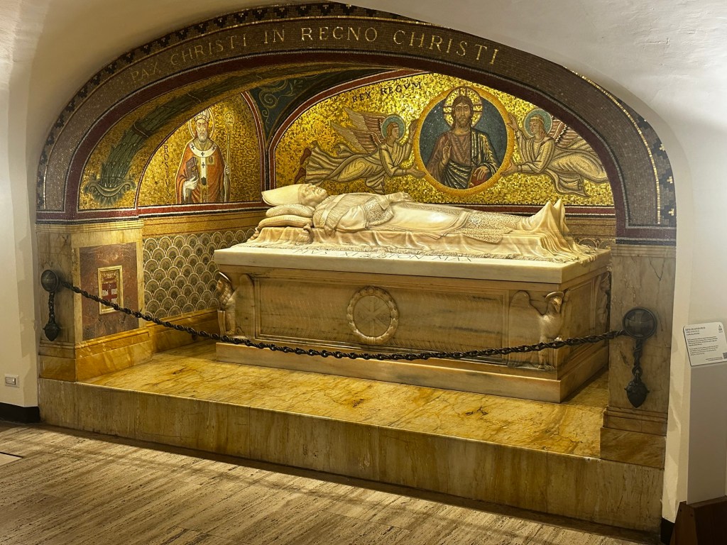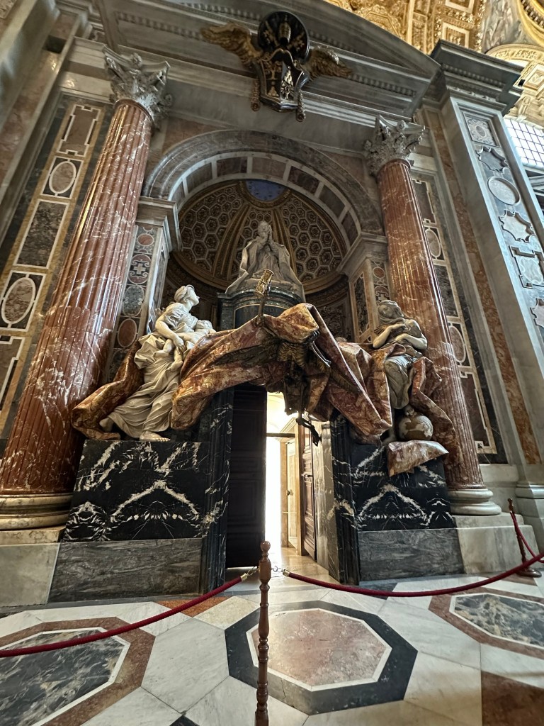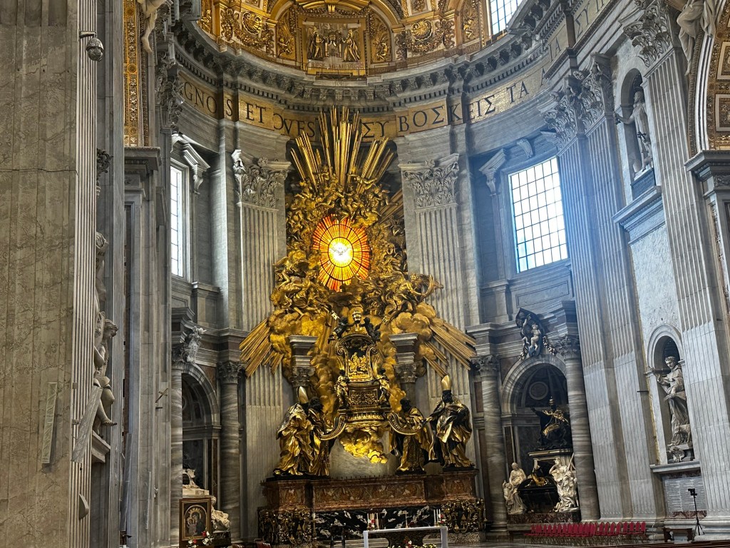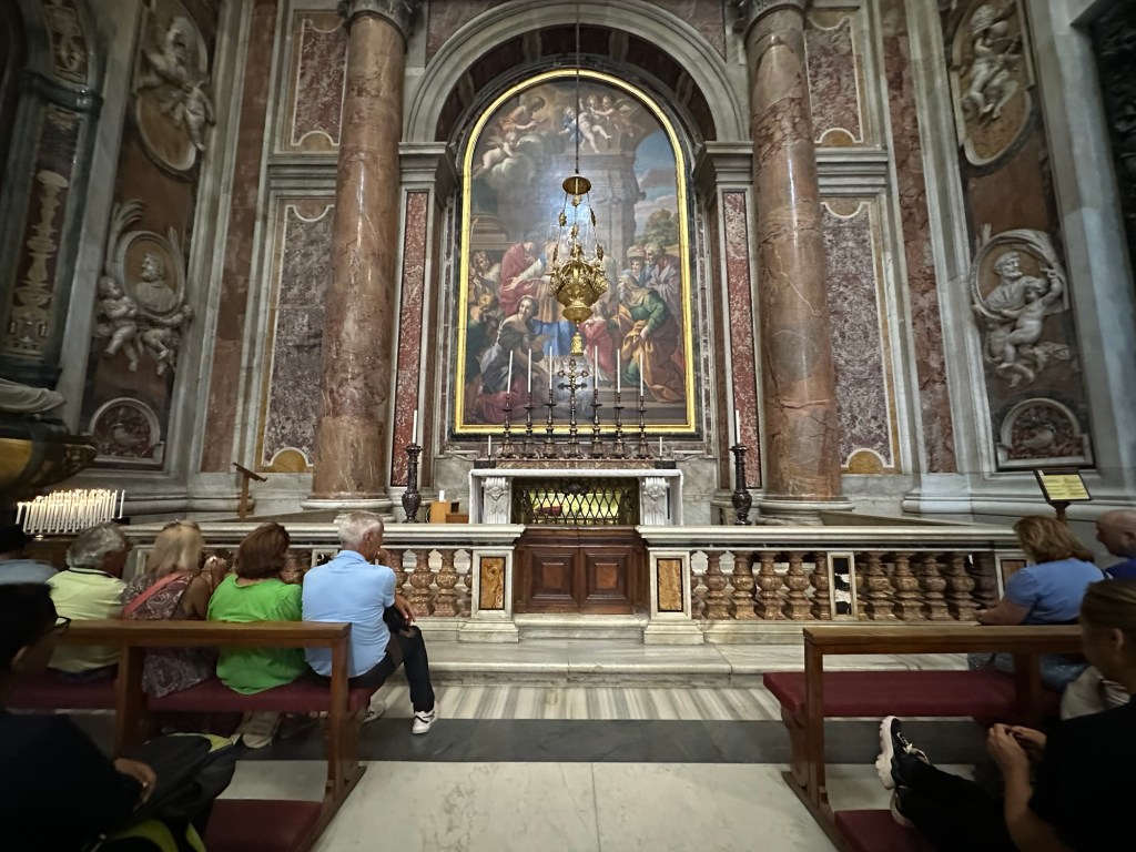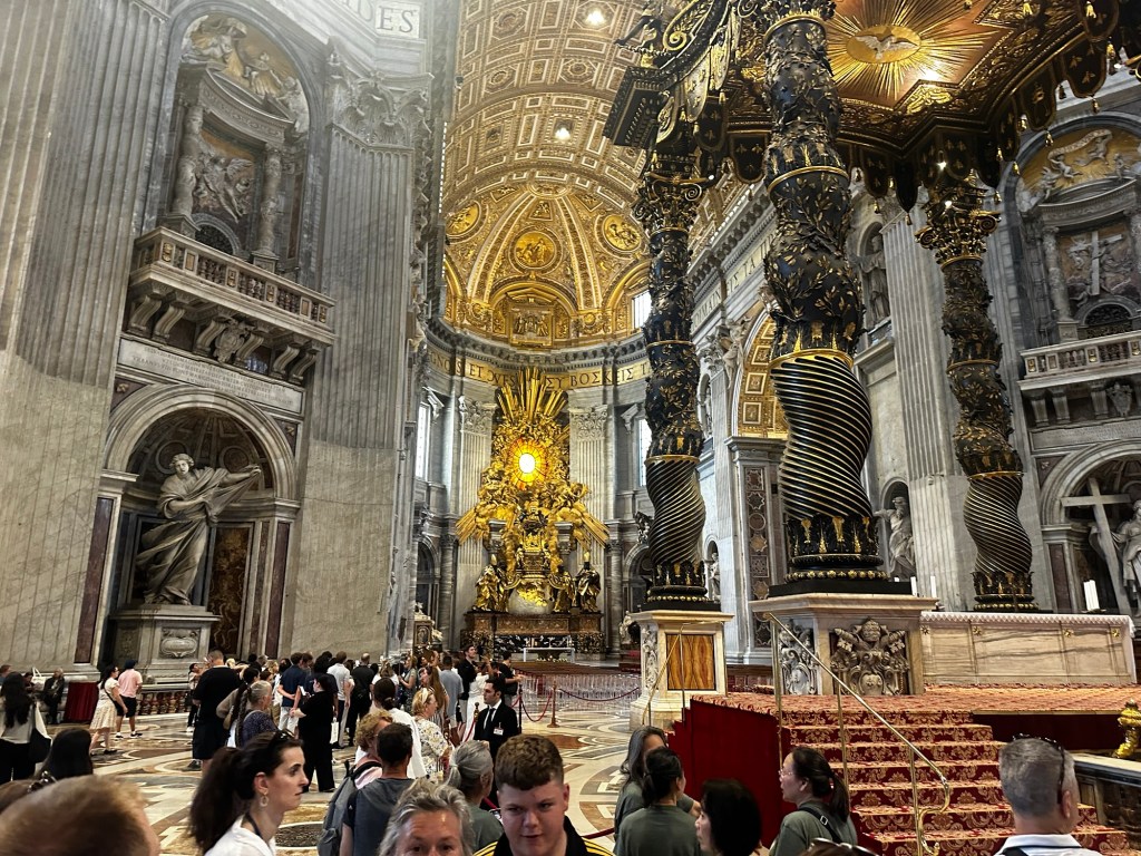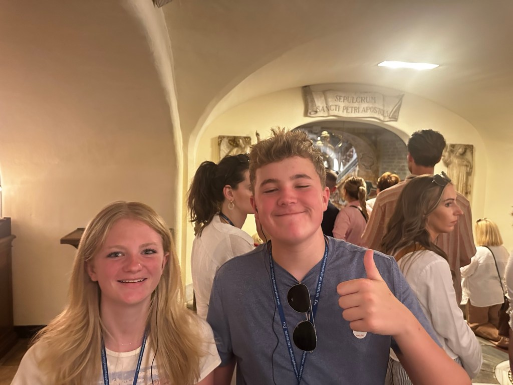 Evie: When we walked up the stairs from the Grottoes and saw St. Peter’s Cathedral for the first time.