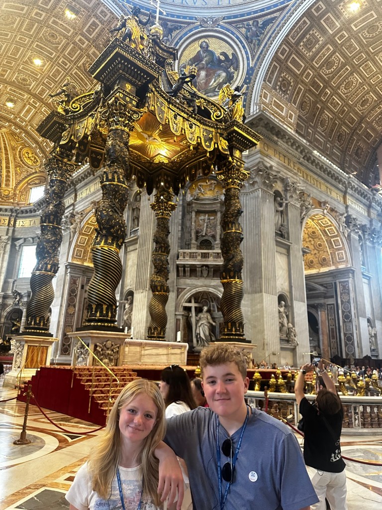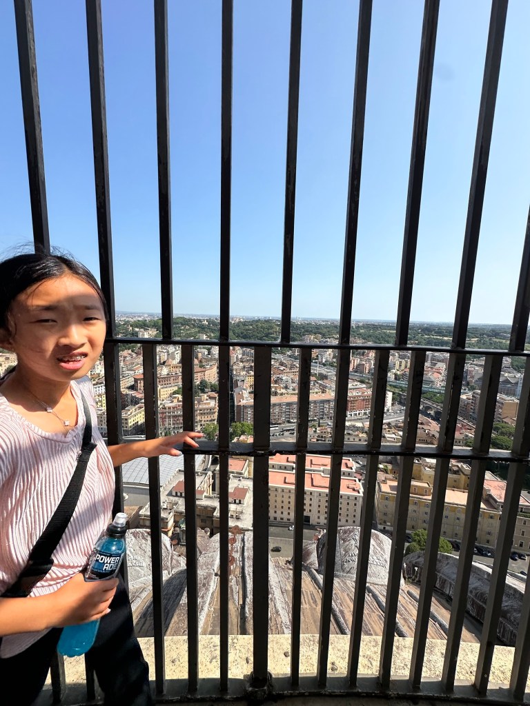 Evie: Climbing St. Peter’s dome. The view was great but I did not like the stairs.