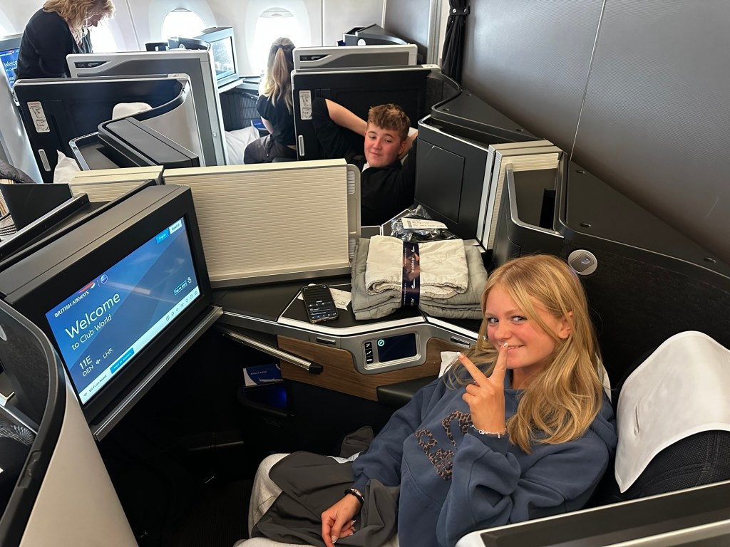 We got on the plane and I became much less annoyed. Our seats on British Airways were quite nice. We had a three hour delay on the runway because of a mechanical issue and weather, but we did not care one bit.